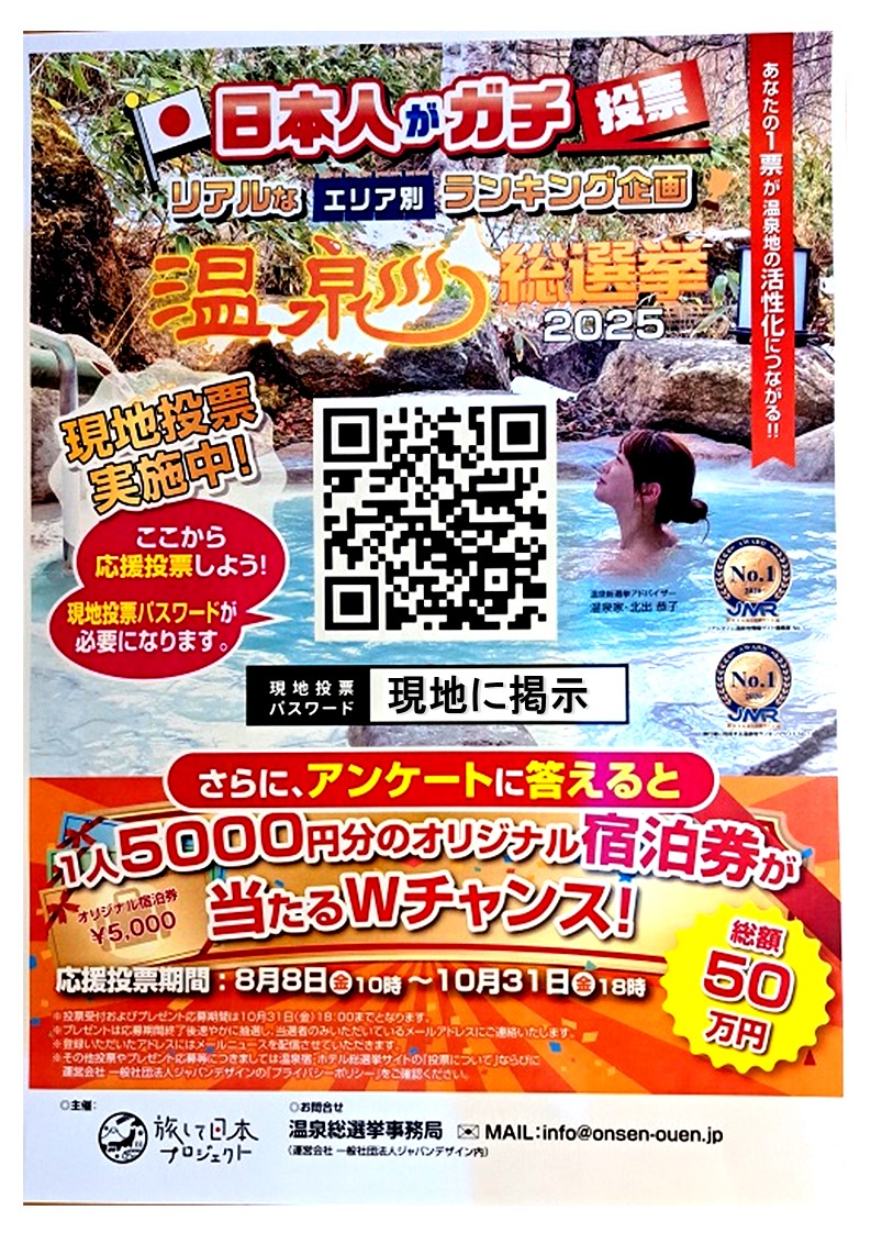 只今、梅ヶ島温泉郷現地で温泉選挙に投票をしていただいた方には