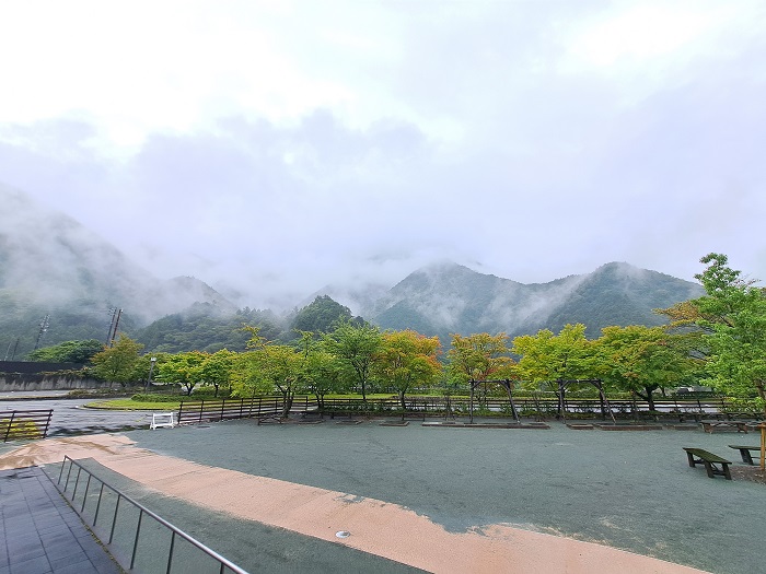 今朝の梅ヶ島は小雨 18℃