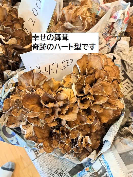 幸せのハート型の舞茸を収穫しました