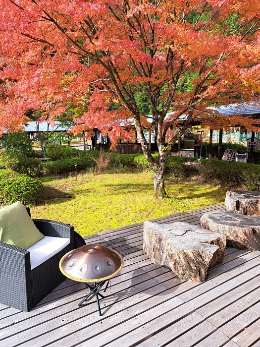 紅葉の下で、温泉と音楽の癒しの時間をお過ごしください