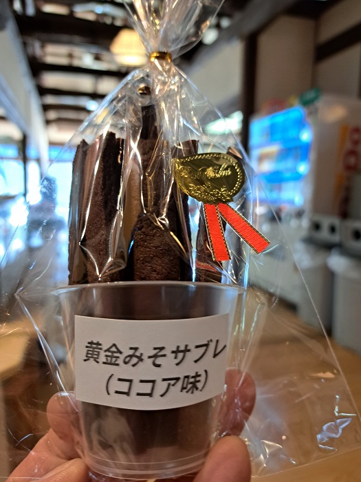 黄金の特製味噌を練りこんだココアサブレを販売しています