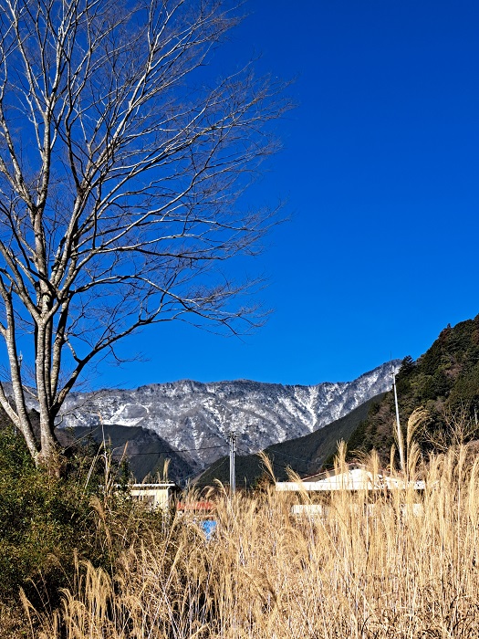 はるかかなたには雪景色の山伏も望む事が出来ます